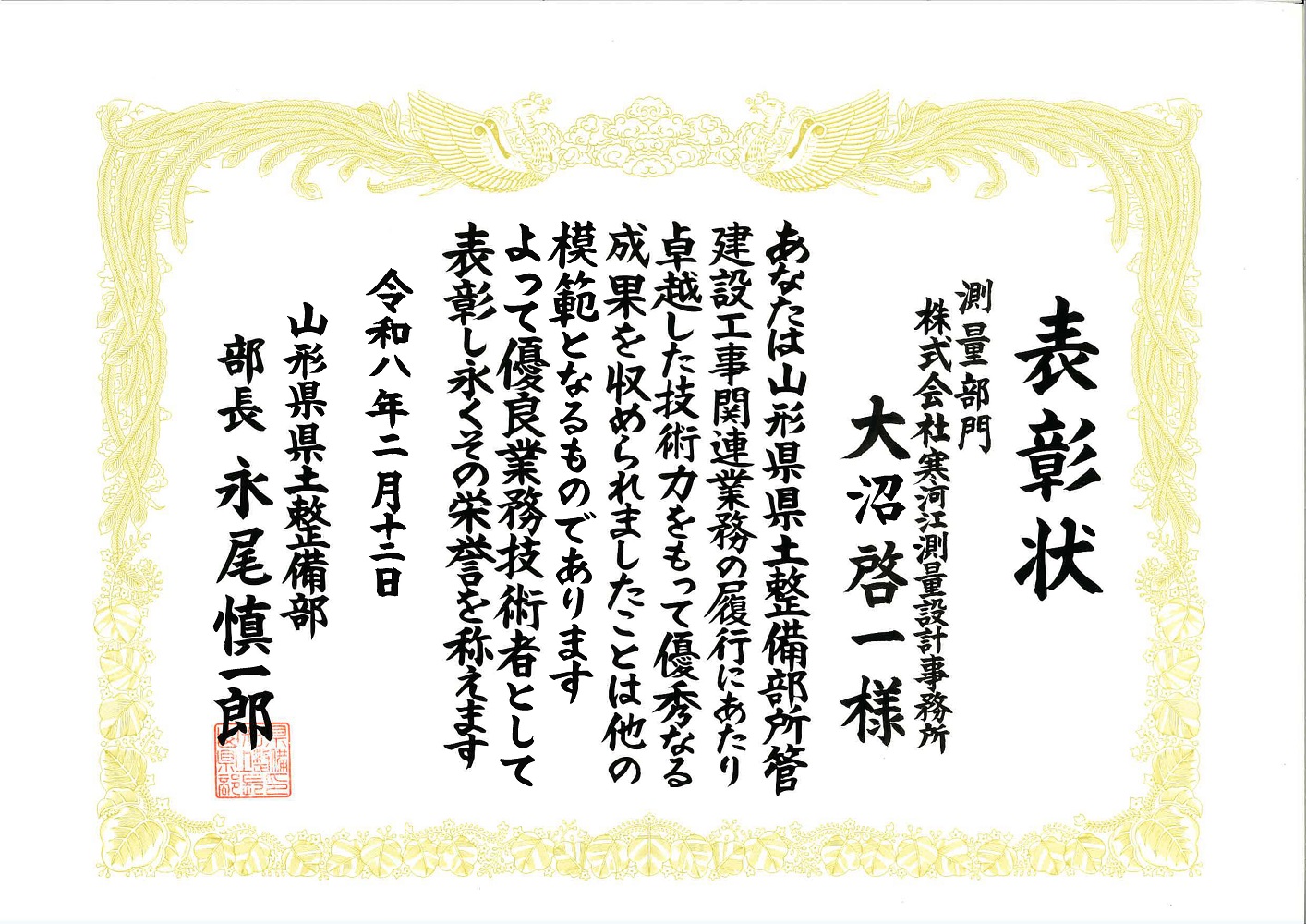 令和7年度山形県県土整備部優良建設工事等技術者表彰受賞